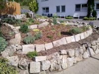 Ausführung – Mauer- und Pflasterarbeiten, Baggerarbeiten, Verrohrungen, Flächen- und Beetgestaltung, standortgerechte Pflanzarbeiten.